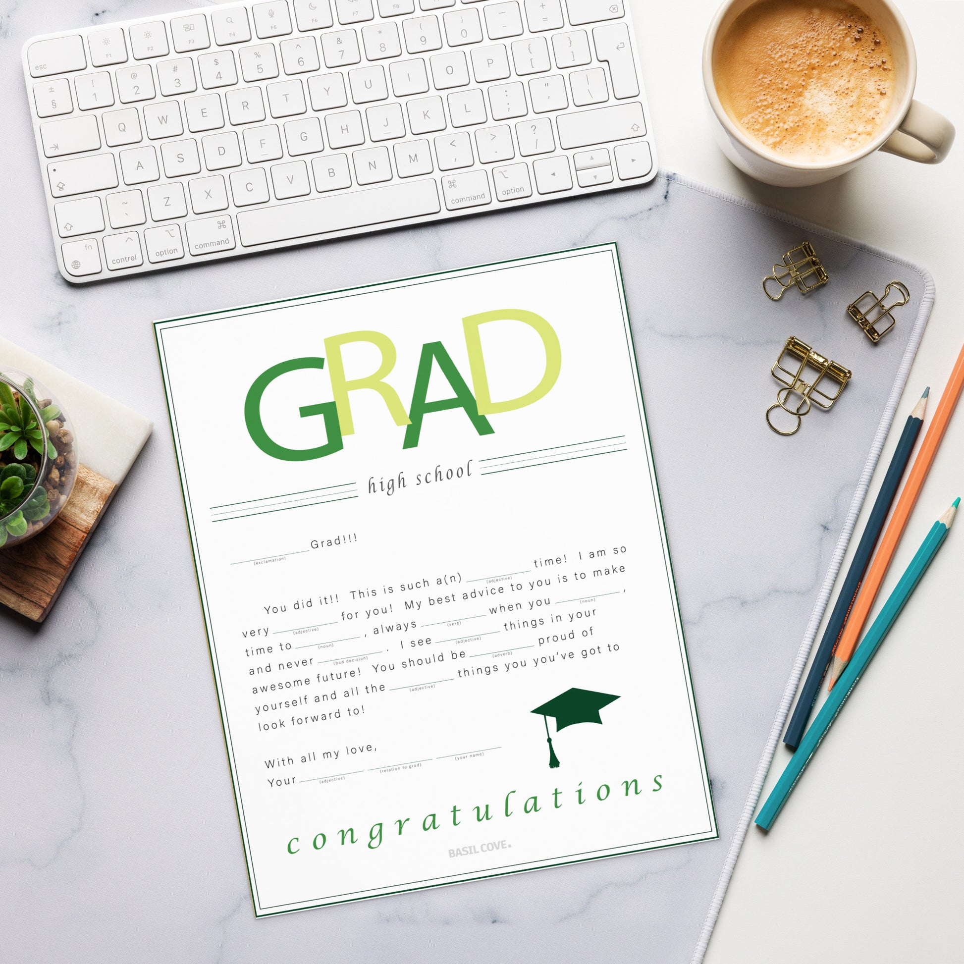 Planning a graduation party? Snag this ad lib for your guests to fill out on behalf of your graduate! Your guests will love it, and your grad will have a keepsake of memories from their great milestone for years to come!